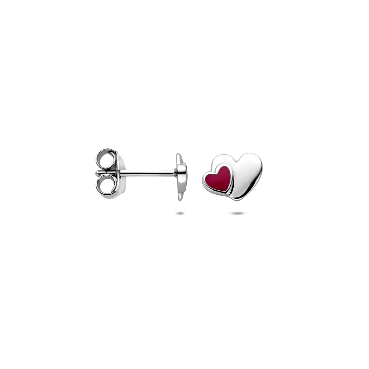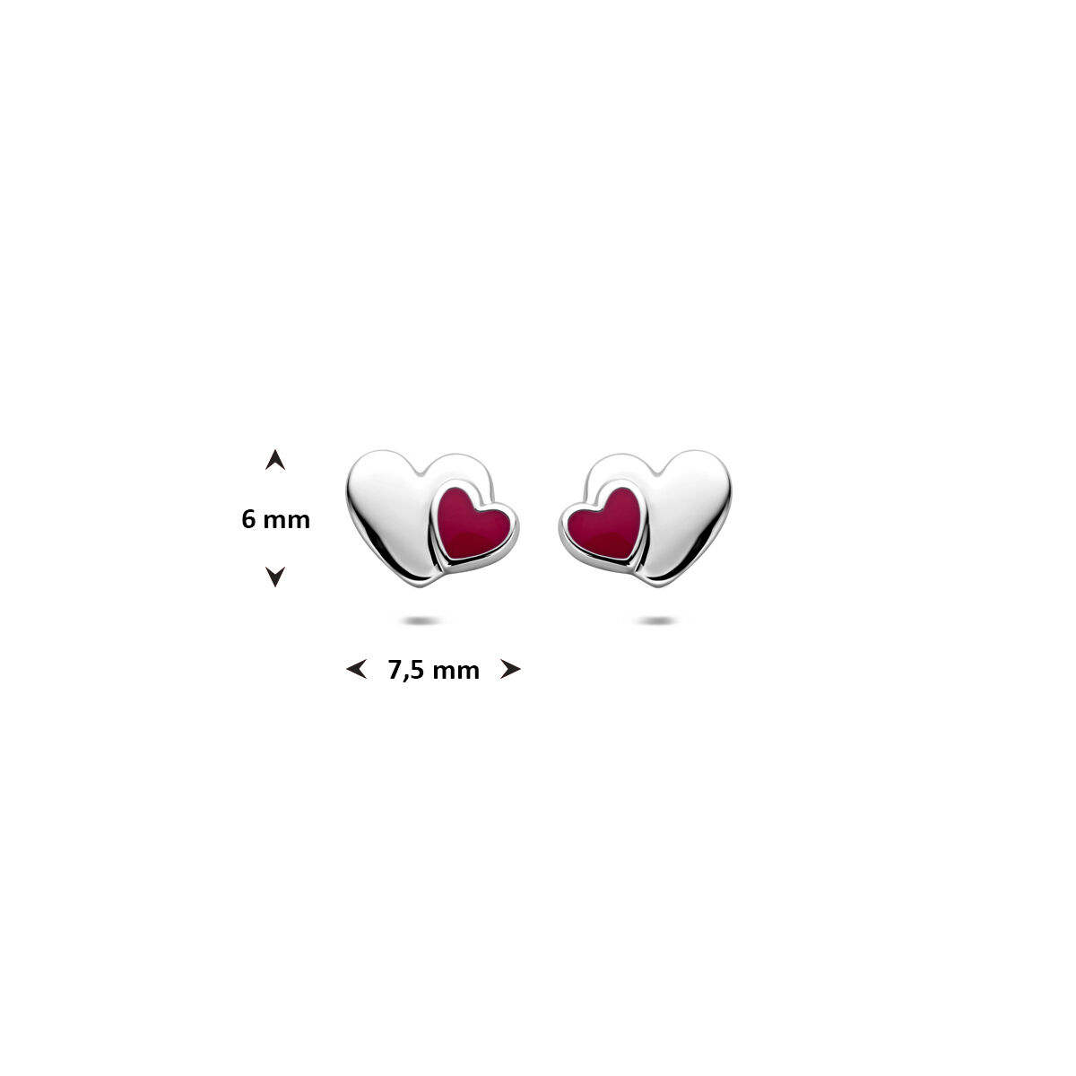 Gerhodineerd 925 zilveren oorknoppen uitgevoerd met een emaille hartje. De oorknoppen hebben een afmeting van 6x7,5mm.