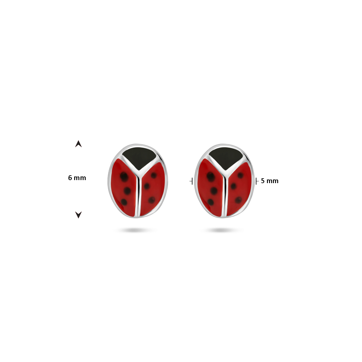 925 Zilveren oorknoppen in de vorm van een emaille lieveheersbeestje.