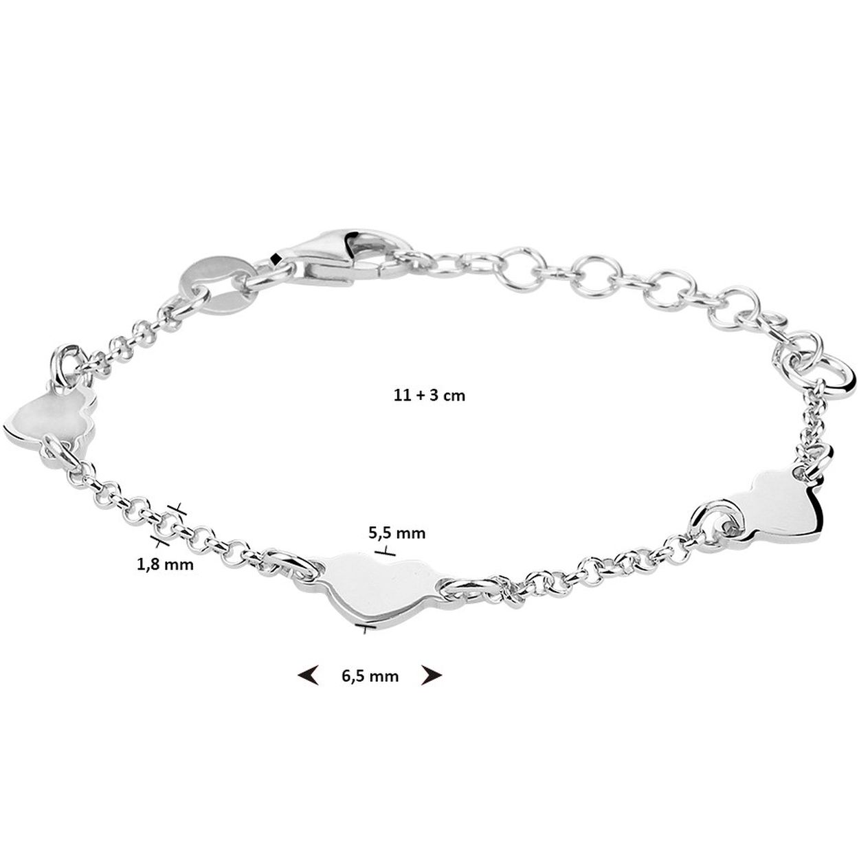 Gerhodineerd 925 zilveren armband uitgevoerd met hartjes. De armband heeft een draaglengte van 11cm met een extensie van 3cm en een stevige karabijn sluiting. De hartjes hebben een afmeting van 5.5x6.5mm.