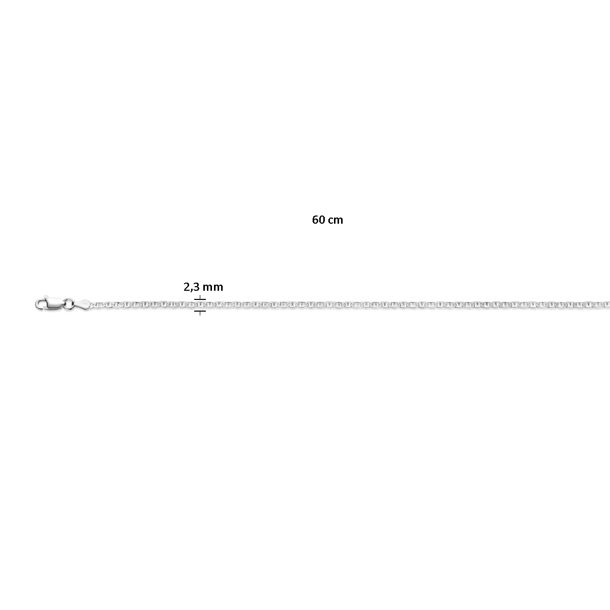925 Zilveren lengteartikel met een schakelbreedte van 2.3mm. Uitgevoerd met een karabijn sluiting.