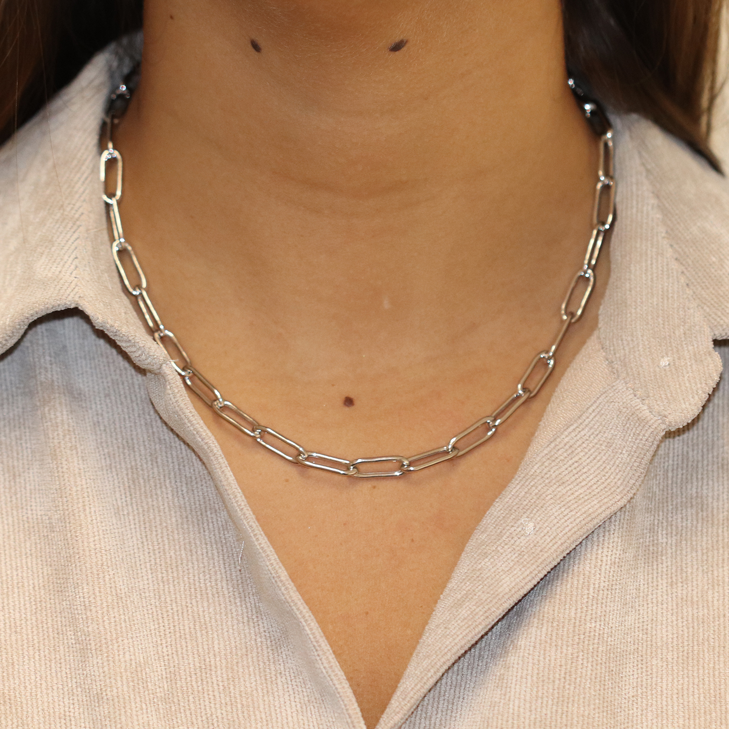 Een schakelcollier is een sieraad die goed gecombineerd kan worden met andere colliers. Dit tijdloze collier is gemaakt van 925 sterling zilver en heeft een breedte van 6mm.
