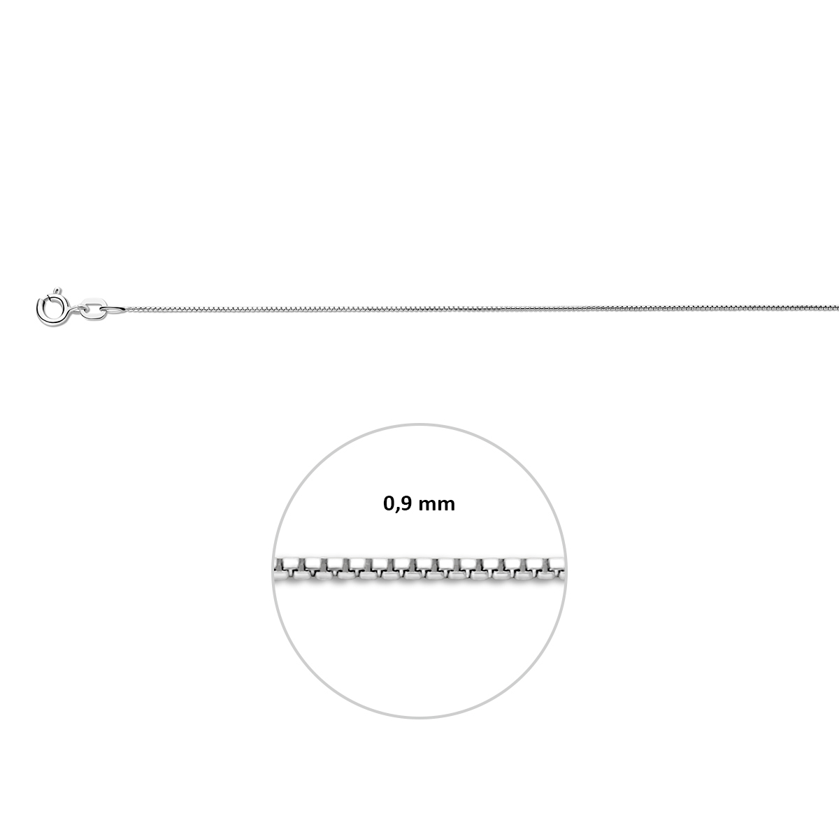 Gerhodineerd zilveren collier met een venetiaanse schakel van 0.9mm. Het collier heeft een draaglengte van 38cm. Info: Gerhodineerd zilver is door de rhodiumlaag beter bestand tegen verkleuren en krassen.