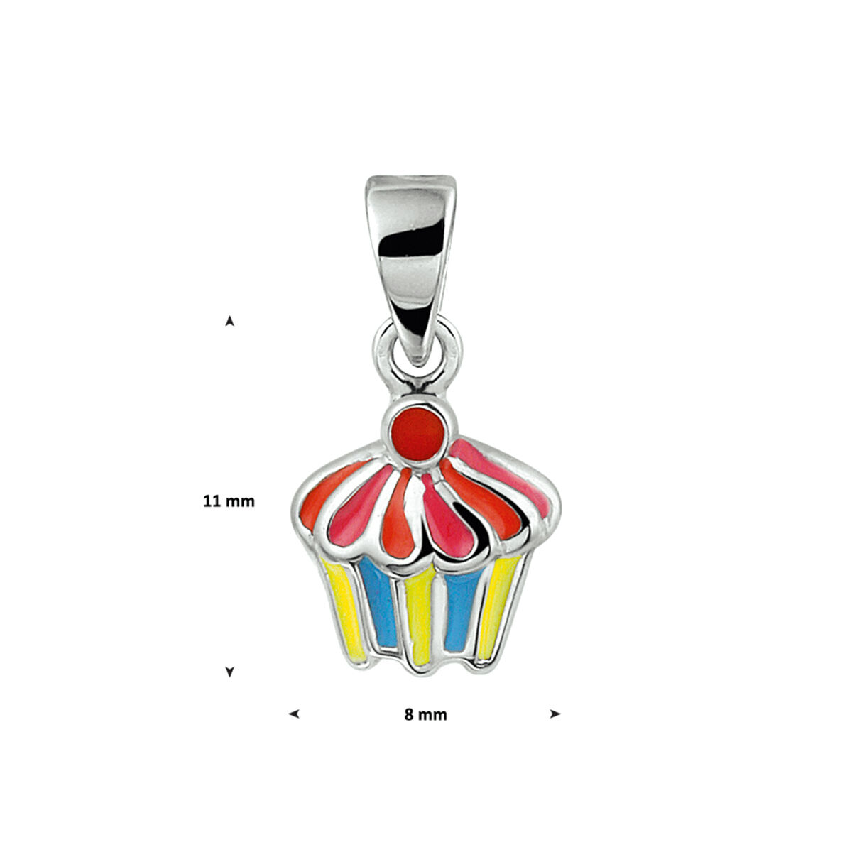 Super leuk kleurrijk gerhodineerd zilveren cupcake hanger uitgevoerd met verschillende kleuren emaille. De hanger heeft een afmeting an 11x8mm. U kunt deze hanger combineren met bijpassende sieraden of een collier uit onze collectie.Tip: Leuk om kado te geven kleurrijk en schattig wat zal ze stralen!
