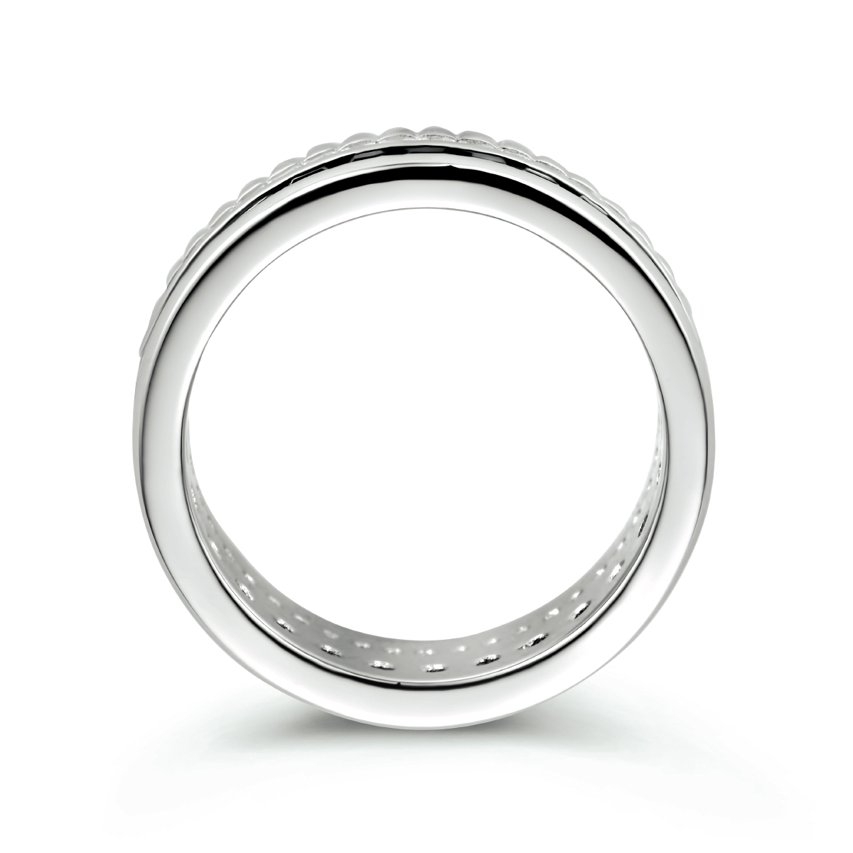 925 Gerhodineerd zilveren ring uitgevoerd met schitterende zirkonia. De ring heeft een breedte van 7mm.