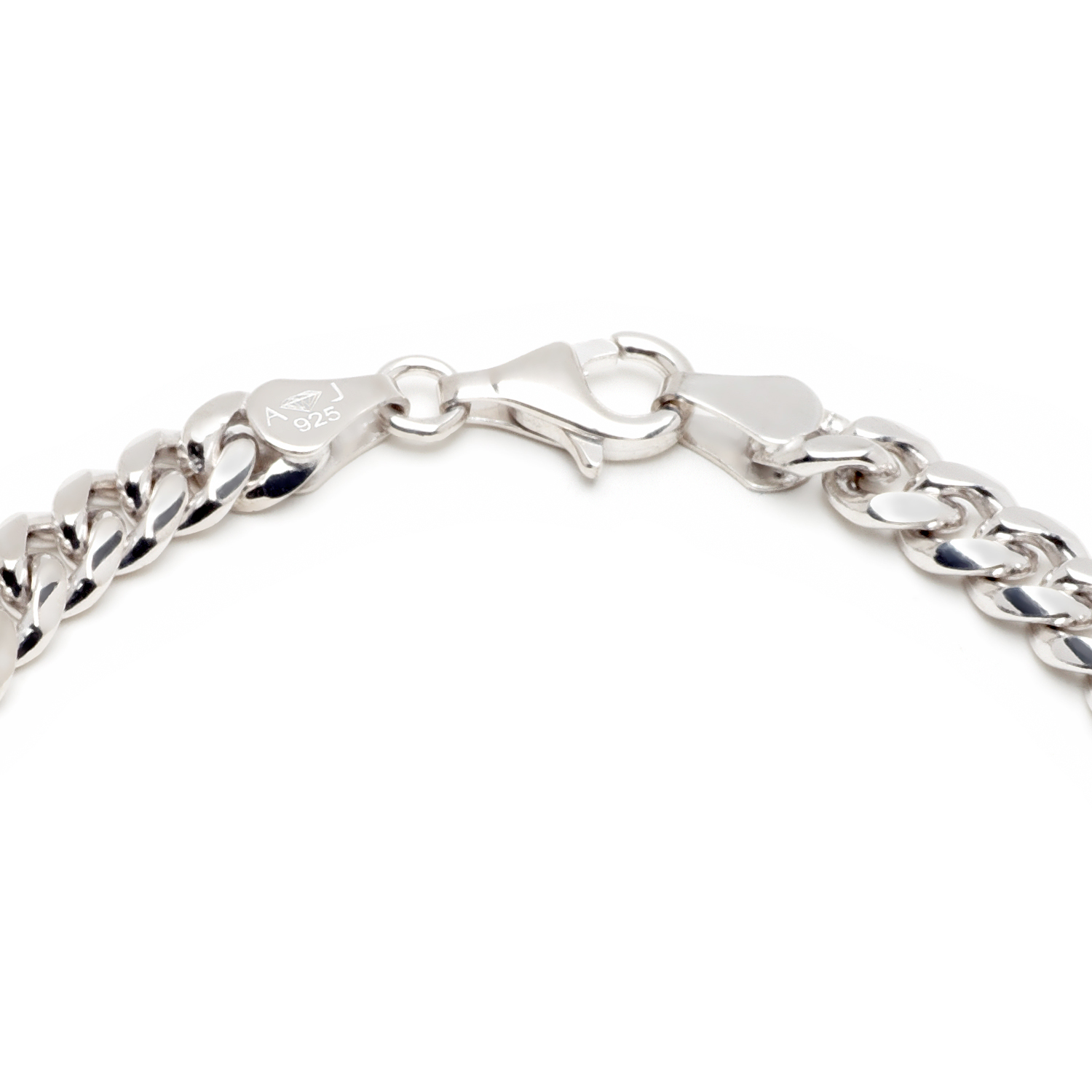 Zilveren gerhodineerde bol geslepen gourmet armband 6mm 22cm