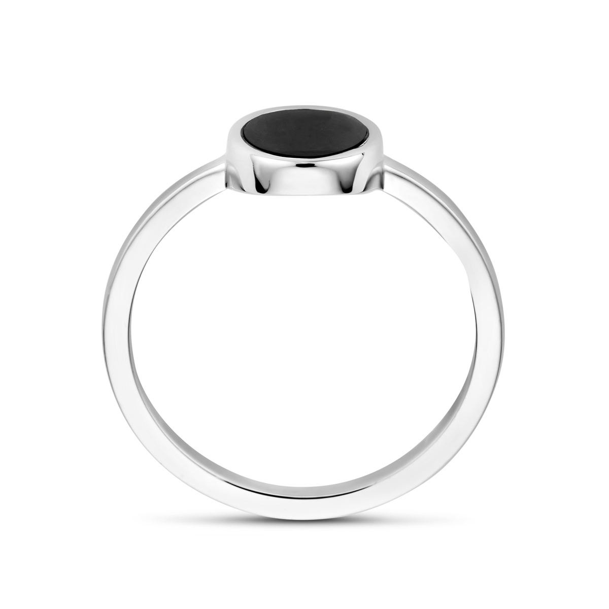 Gerhodineerd 925 zilveren ring uitgevoerd met onyx. De ring heeft een breedte van 9mm.