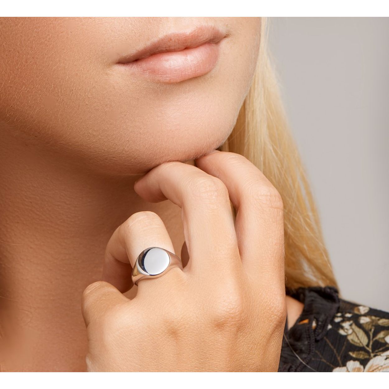 Gerhodineerd zilveren graveerring met een breedte van 12.5mm. De ring geeft je look direct een chique uitstraling. Info: Gerhodineerd zilver is door de rhodiumlaag beter bestand tegen verkleuren en krassen.