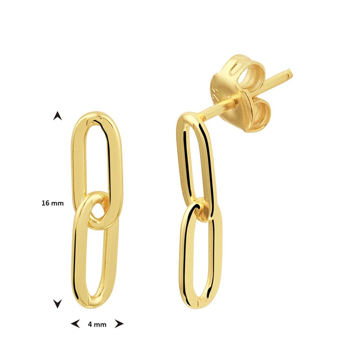 Geelgoud op 925 zilveren oorhangers uitgevoerd in schakelvorm. De oorhangers hebben een totale hoogte van 1.6cm en een breedte van 4mm. Geen garantie op plating.