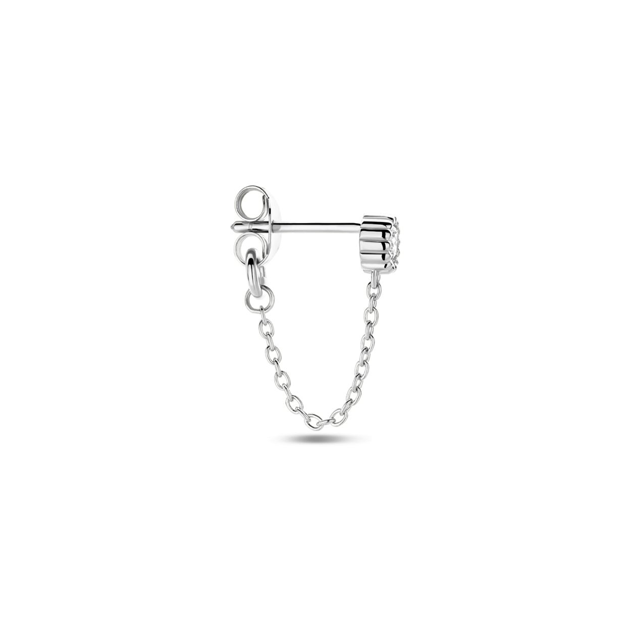 Gerhodineerd 925 zilveren oorknop uitgevoerd met wit zirkonia. De oorknop heeft een diameter van 4.5mm. Deze oorsieraden worden per stuk verkocht ipv per paar.