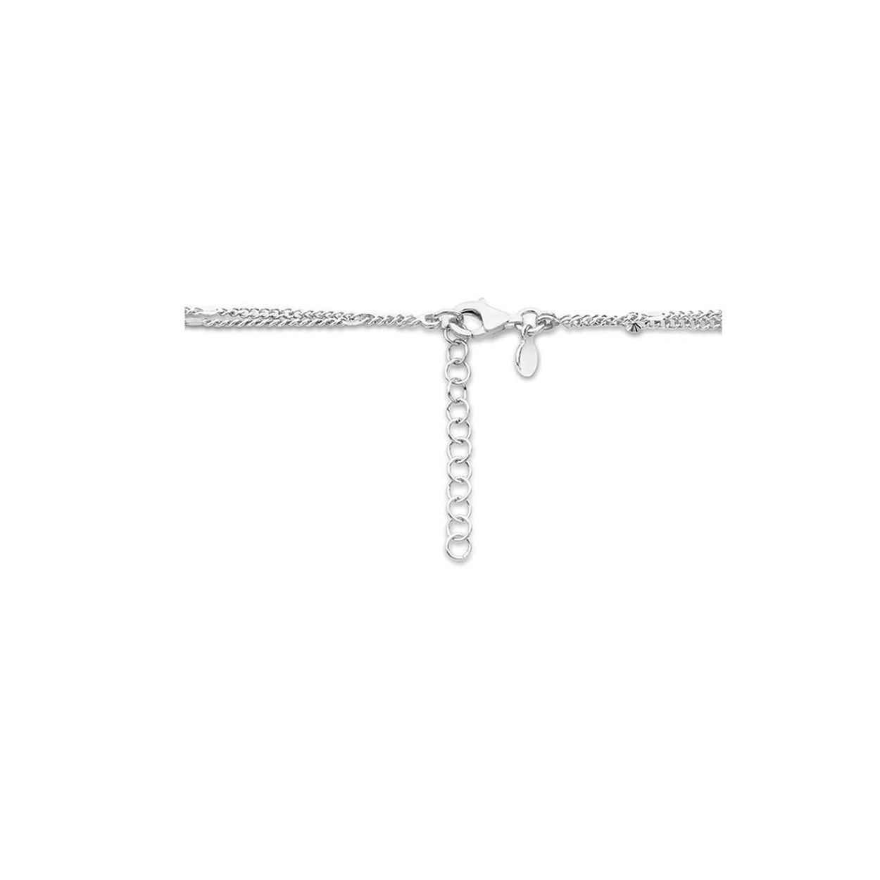 Gerhodineerd 925 zilveren collier uitgevoerd met plaatjes met een breedte van 2.4mm. Het collier heeft een draaglengte van 42cm met een extensie van 3cm en een stevige karabijn sluiting.